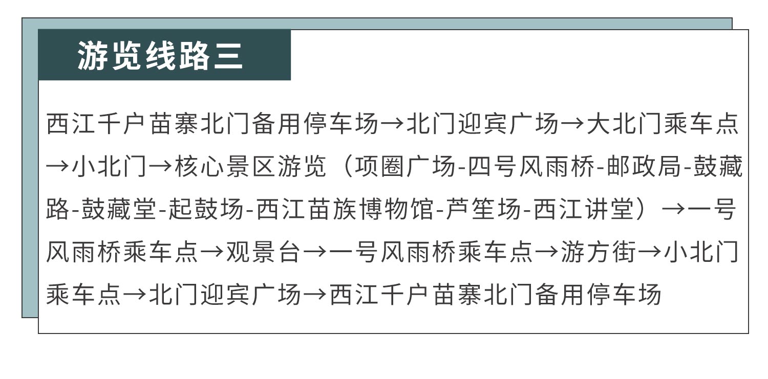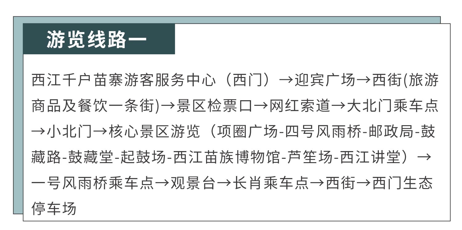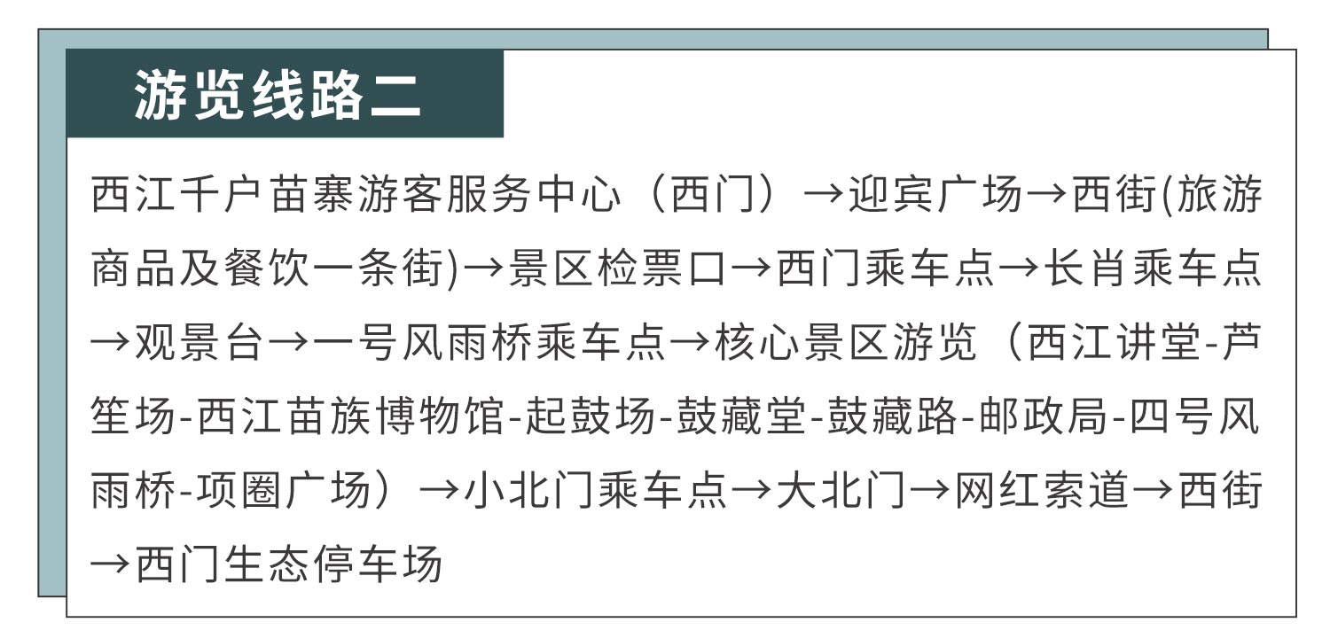 观景台是每个游客的必到之处,是游览观赏西江苗寨的最佳位置。白天在观景台俯瞰,首先映入眼帘的是西江苗寨的全景图,整个苗寨以穿枋吊脚楼、田园风景与农耕生活为背景。吊脚木楼,层层叠叠、鳞次栉比、气势恢宏。夜晚在观景台看西江,整个苗寨繁星点点、灯火辉煌、景色璀璨、琼楼玉宇仙阁,恰似天上人间。与流水绿树、古街木桥、吊脚木楼相互辉映,远远看去,整个苗寨如同一只振翅欲飞的银蝶。蝶。